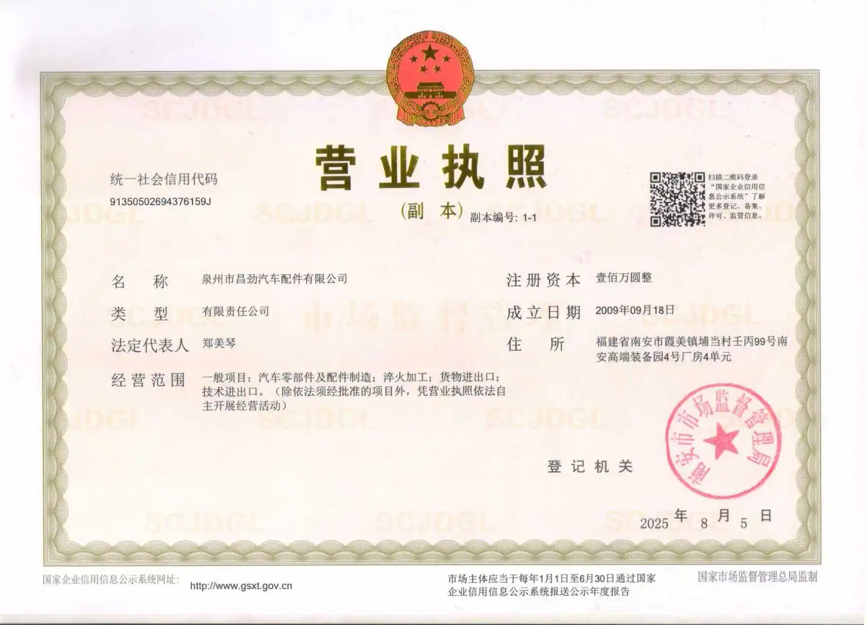 Legal Representative : Zheng Meiqin